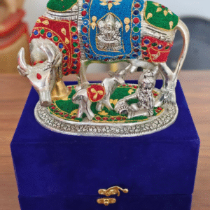 Deep TSand with stonework (Decor Items) in German Silver, ideal for religious & spiritual decor. Size: 12. Color: Silver with green and blue.