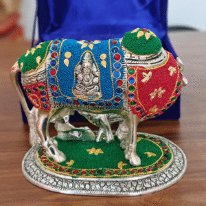 Deep TSand with stonework (Decor Items) in German Silver, ideal for religious & spiritual decor. Size: 12. Color: Silver with green and blue.