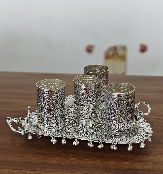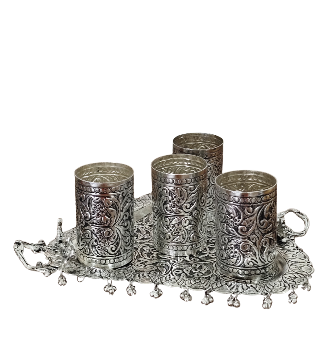 Silver set of 6 glasses in Silver on Brass, ideal for brass & silver decor.
